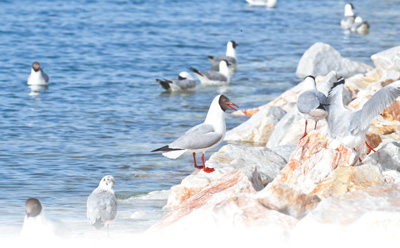 棲息在青海湖國家級自然保護(hù)區(qū)的棕頭鷗。姜峰 攝