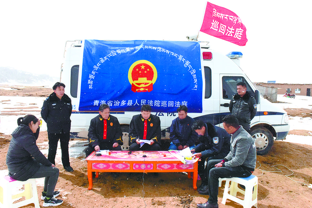 治多縣人民法院巡回法庭工作組在索加鄉(xiāng)對一起民事糾紛進行巡回審理。