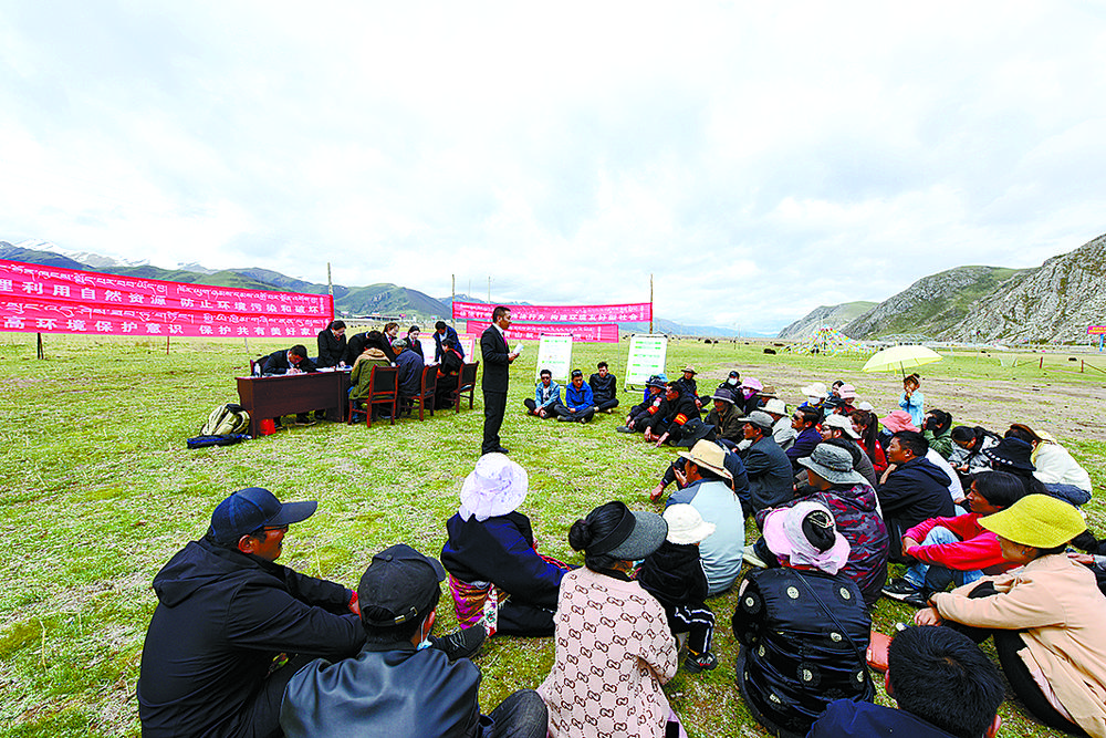 玉樹市人民法院在巴塘鄉(xiāng)開展生態(tài)司法普法宣傳。