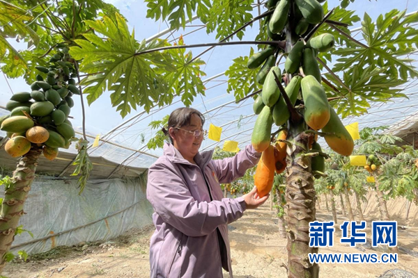(資料圖)農(nóng)戶查看特色種植水果的長(zhǎng)勢(shì)。新華網(wǎng)發(fā)