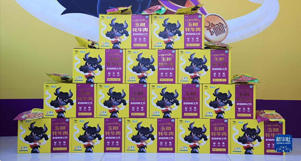 產(chǎn)自海拔4000多米的玉樹牦牛,由北京老字號月盛齋制成五香牦牛肉、紅燒牦牛腱、香辣牦牛雜等食品,令人眼前一亮。