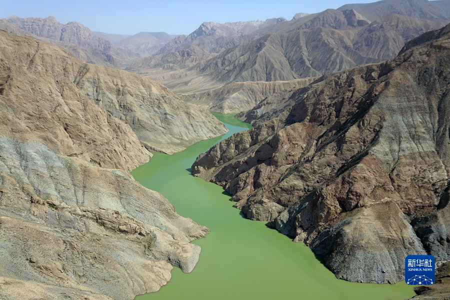 這是6月8日在青海省海西蒙古族藏族自治州德令哈市境內(nèi)拍攝的蓄水中的蓄集峽水庫(無人機照片)。新華社記者 范培珅 攝