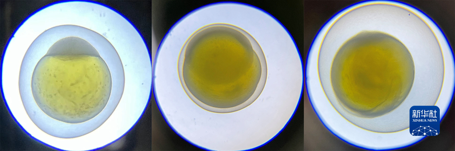 這是一張拼版照片,從左往右依次為6月13日至15日顯微鏡觀察的小頭裸裂尻魚(yú)受精卵發(fā)育情況。受訪者供圖
