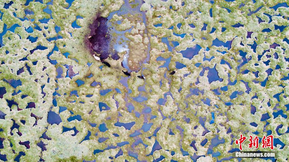 6月18日,航拍長江源區(qū)最大泥碳濕地——查旦濕地。查旦濕地地處青海省玉樹州雜多縣境內(nèi),唐古拉山北麓與瀾滄江西源扎曲形成的一個夾角。由于受南亞季風(fēng)的影響,每年5月至9月之間形成豐沛的降水,從而濕地廣布,河流縱橫,被稱之為“青藏水鄉(xiāng)”,長江南源當(dāng)曲(意為沼澤河)發(fā)源于此。 李江寧 攝