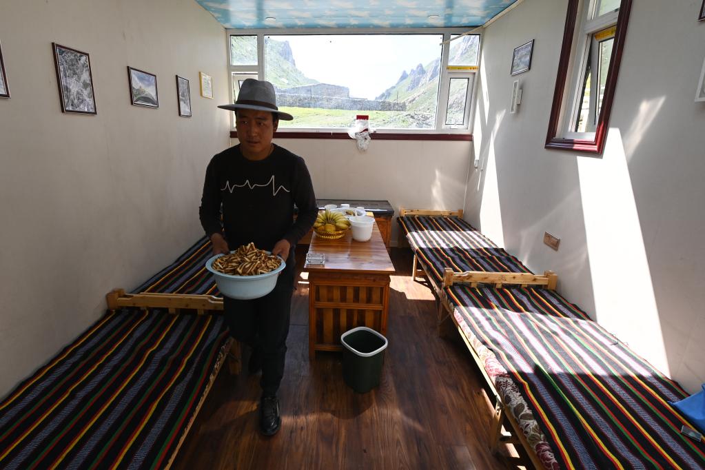 受新冠肺炎疫情影響,昂賽大峽谷自然體驗項目去年暫停。今年7月8日,大峽谷自然體驗活動重新開放預(yù)約,政府為接待家庭提供了新的接待集裝箱。桑周置辦了新的床、被褥、桌子、爐子等,還貼上了藍天白云的壁紙?!榜R上要接待新的體驗者了,一定要讓他們有家的感覺。”看著收拾一新的“家”,桑周十分欣喜。