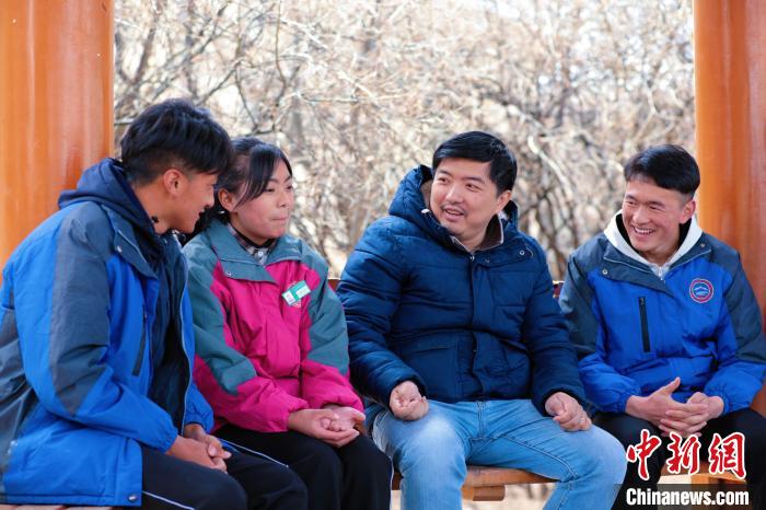 圖為丁志偉(右二)正在與學生聊天。上海市援青干部聯(lián)絡組供圖
