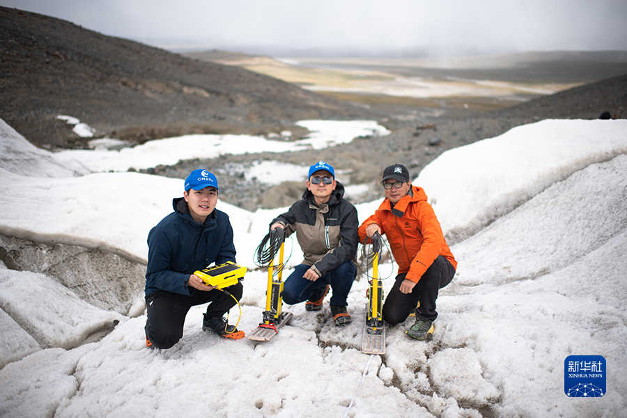 在青海開(kāi)展的2022年江源綜合科學(xué)考察中,冰川觀測(cè)是重要內(nèi)容之一。來(lái)自長(zhǎng)江水利委員會(huì)長(zhǎng)江科學(xué)院的科考隊(duì)員們,首次使用地質(zhì)雷達(dá)探測(cè)長(zhǎng)江源冰川厚度,積累基礎(chǔ)數(shù)據(jù)。