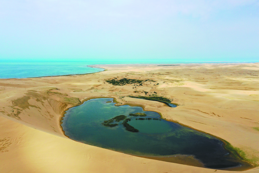 青海湖沙島人退水漲綠來(lái)。