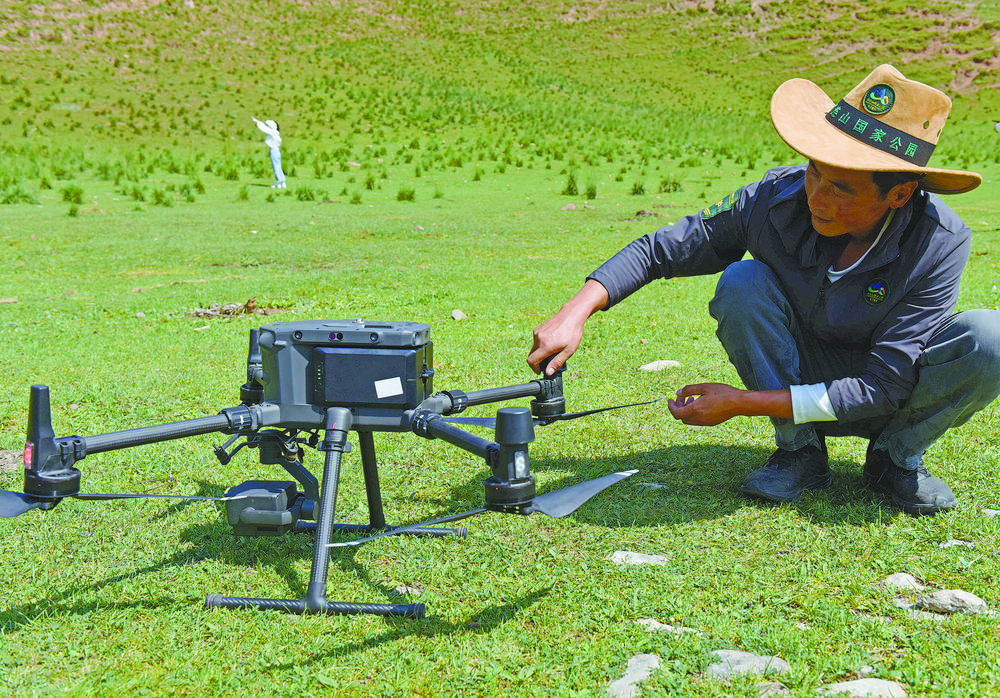 管護(hù)員開(kāi)展無(wú)人機(jī)巡護(hù)前對(duì)無(wú)人機(jī)進(jìn)行檢查。
