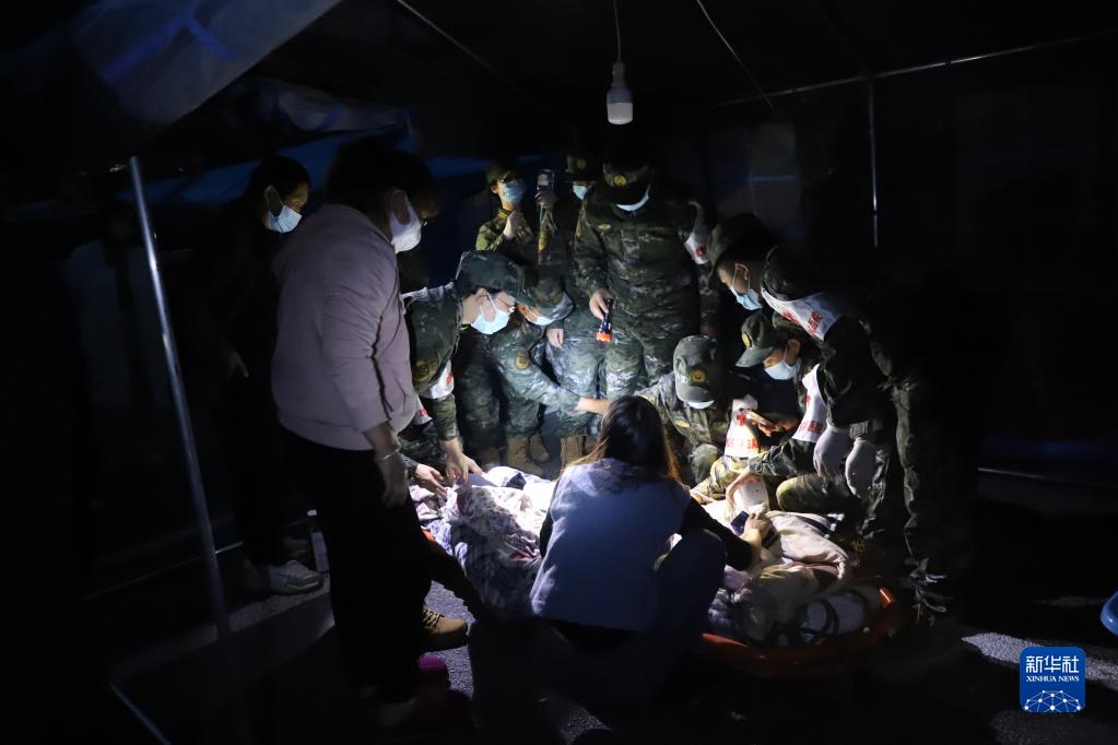 9月5日,武警四川總隊醫(yī)院醫(yī)療隊在甘孜州瀘定縣磨西鎮(zhèn)貢嘎山王廣場救治傷員。新華社 李華時 攝