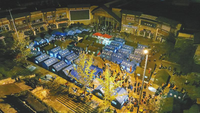 5日傍晚,甘孜州瀘定縣磨西鎮(zhèn),臨時安置點的燈亮了;雅安市石棉縣新民鄉(xiāng),抗震救災(zāi)指揮部的燈也亮了。