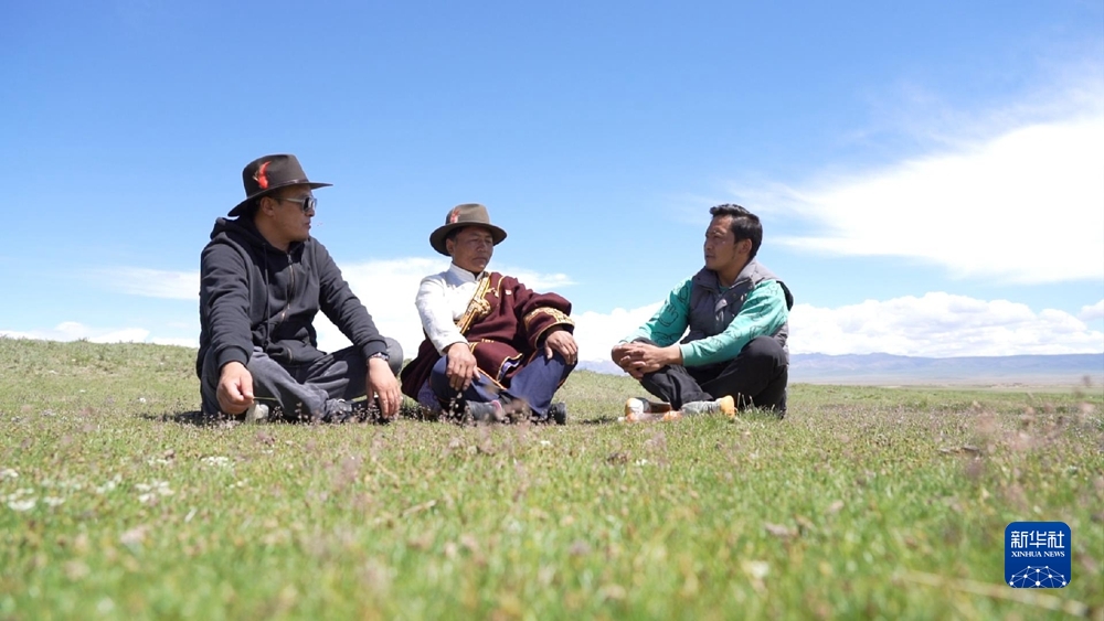 6月28日,蘇里鄉(xiāng)牧民圍坐在草原上休息。(新華社記者 李占軼 攝)