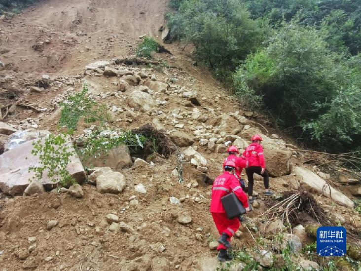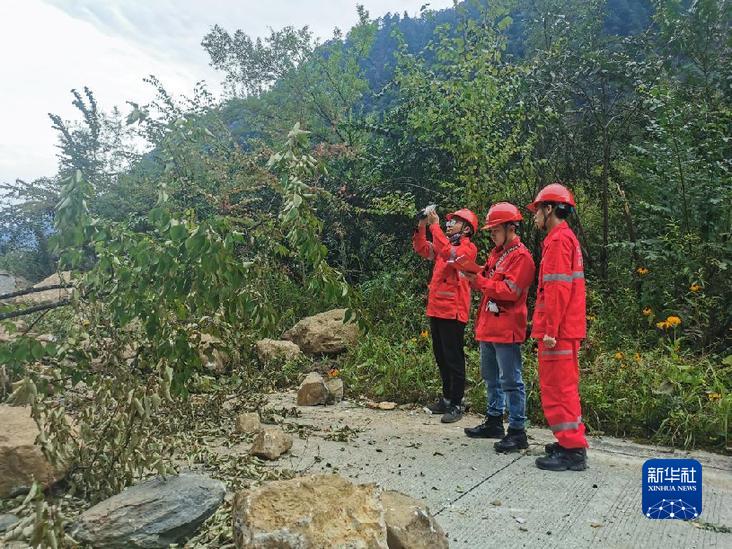9月7日,四川省冶勘設計集團有限公司的調查隊員在海螺溝景區(qū)內進行地質災害應急排查工作。新華社發(fā)(四川省冶勘設計集團有限公司供圖)