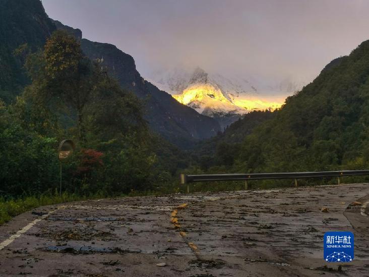 這是9月10日拍攝的海螺溝景區(qū)內部道路和貢嘎雪山側峰。新華社發(fā)(四川省冶勘設計集團有限公司供圖)