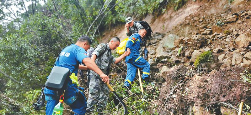 青年應(yīng)急志愿者進(jìn)山搜救。
