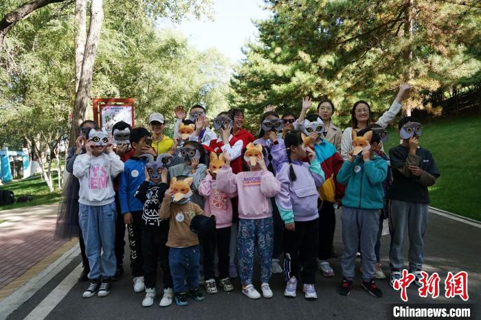 圖為青海野生動物救護(hù)繁育中心副主任向?qū)W生介紹荒漠貓。馬銘言 攝