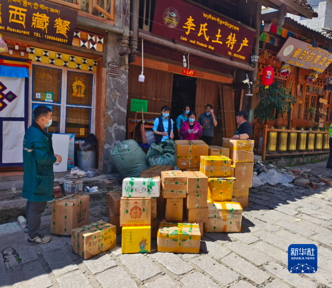 9月10日,磨西郵政支局員工在震后中秋節(jié)上門為客戶收寄包裹。(四川郵政供圖)