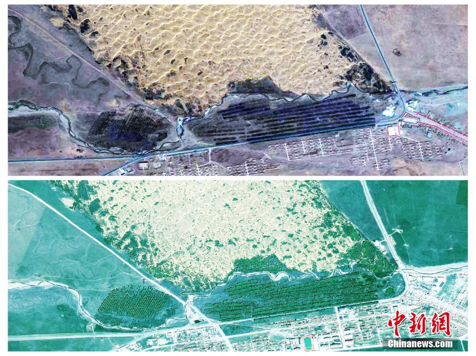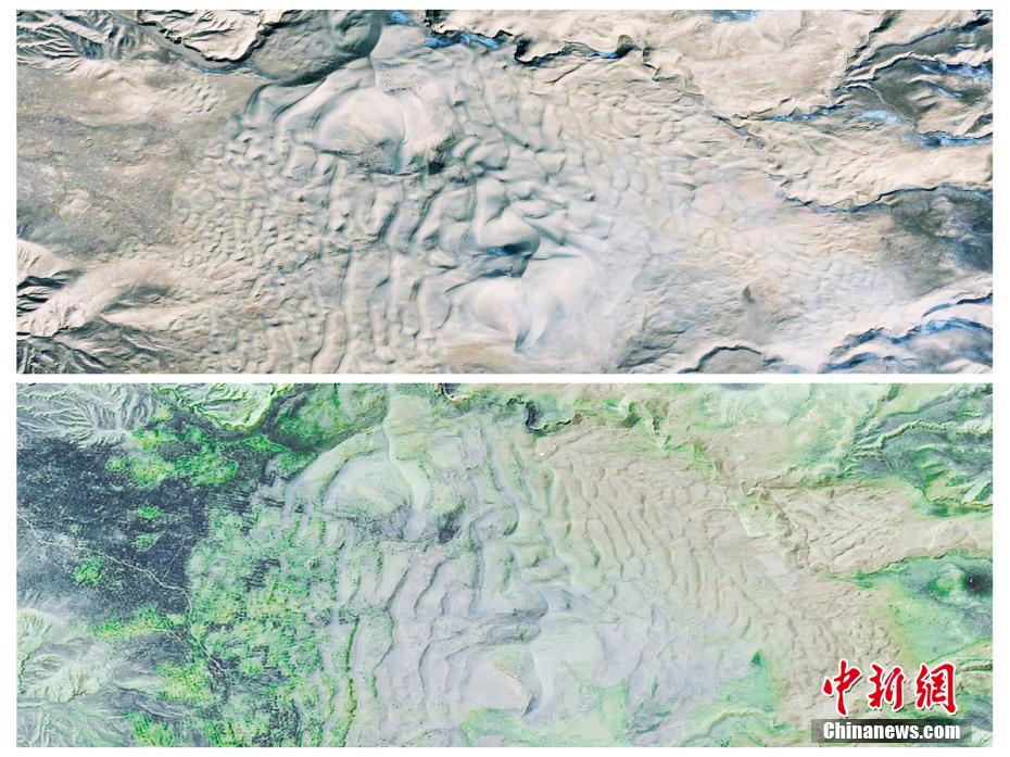 圖為青海省海南州貴南縣黃沙頭2013年(上圖)和2022年(下圖)治理對(duì)比。彭璽 供圖