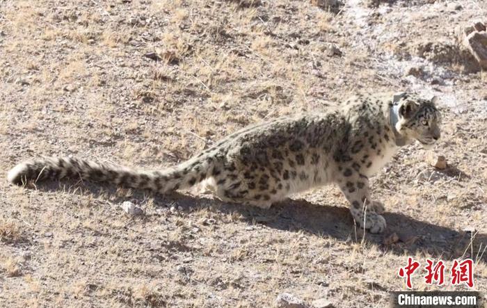 資料圖為佩戴衛(wèi)星項圈的雪豹“祁跡”。 中新社發(fā) 祁連山國家公園青海省管理局 供圖