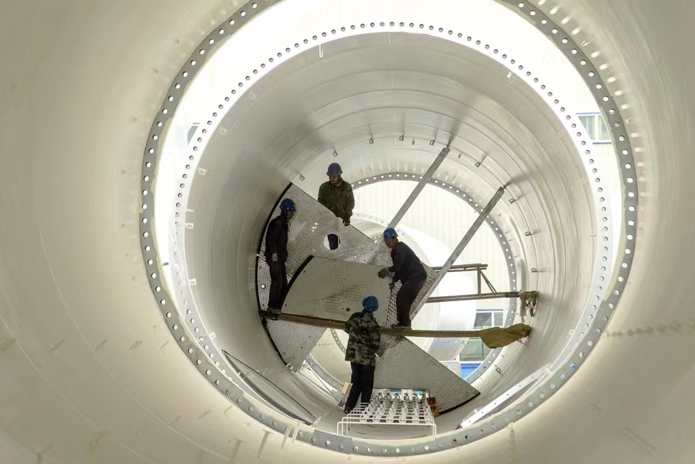 圖為工人在加工新生產(chǎn)的風電塔筒。(受訪者供圖)
