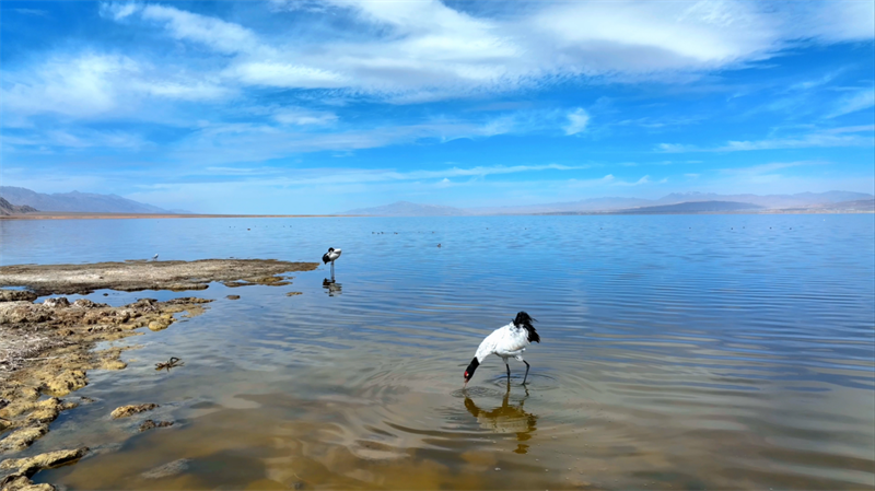 黑頸鶴群現(xiàn)身柴達(dá)木盆地都蘭湖國家濕地公園