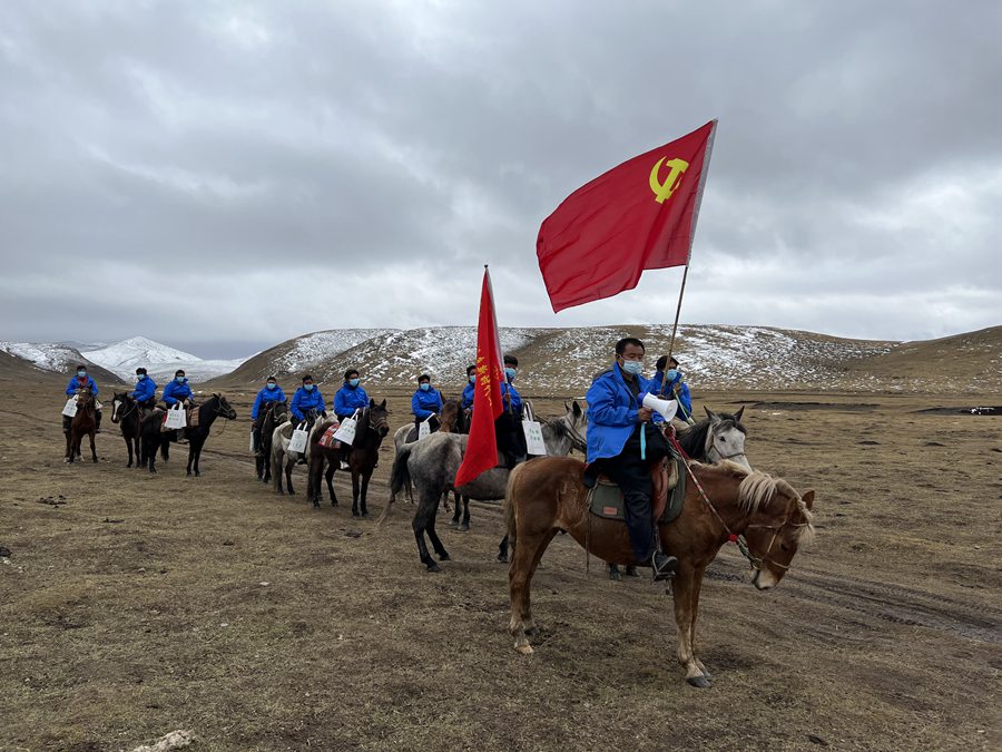 寒風(fēng)呼嘯,馬背上,黨旗獵獵作響。經(jīng)過一個(gè)多小時(shí)的跋涉,宣講隊(duì)來到目的地。