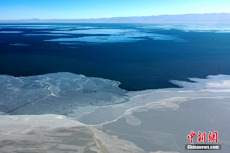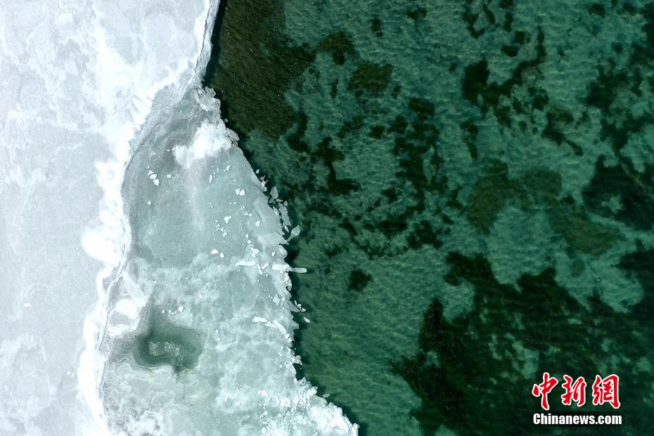 青海湖湖面封凍如破碎“玉帶”