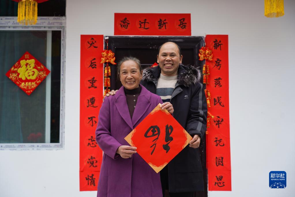 1月22日,石棉縣新民藏族彝族鄉(xiāng)農(nóng)鄉(xiāng)村二組村民劉芳蓉和丈夫在新居前合影。石棉縣融媒體中心供圖