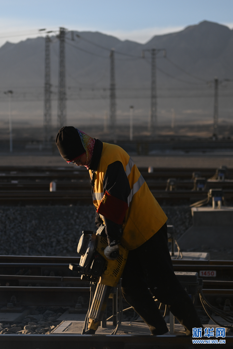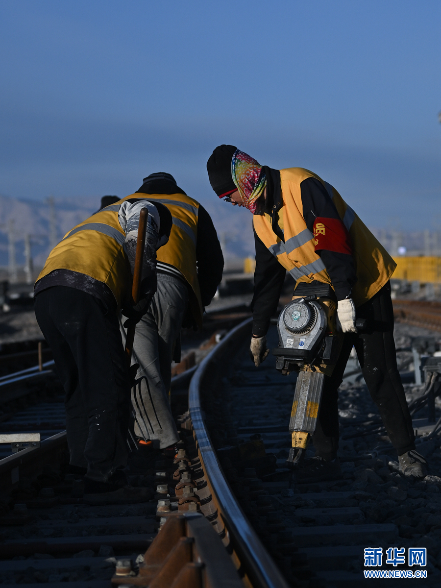 2月7日,中國(guó)鐵路青藏集團(tuán)有限公司格爾木工務(wù)段格南線路工區(qū)的職工在格爾木南站施工。新華社記者 張龍 攝