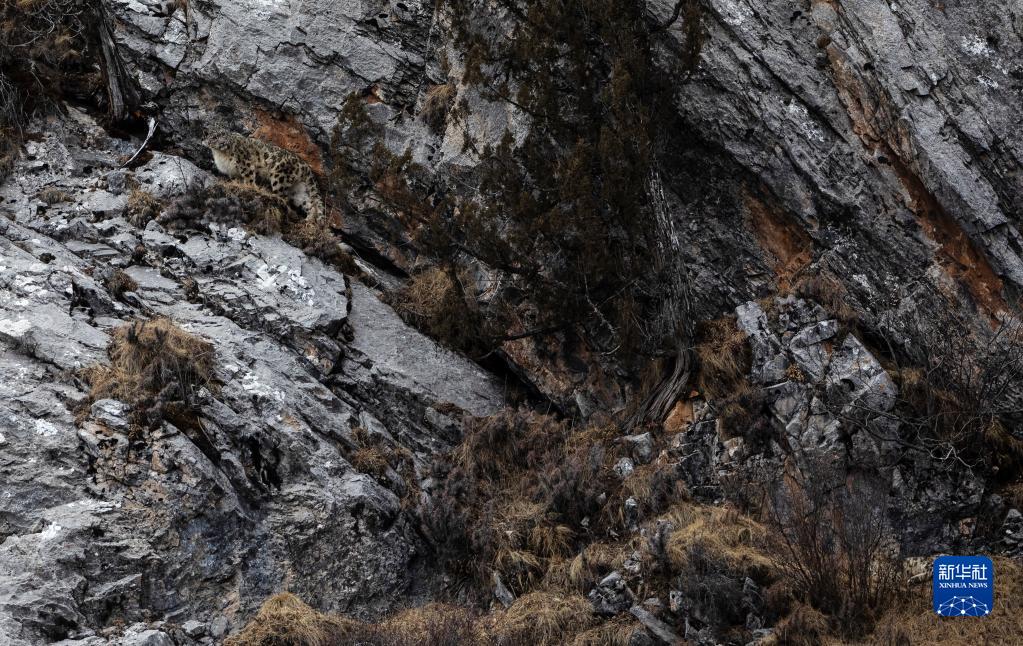 2月21日,在青海省玉樹(shù)藏族自治州雜多縣昂賽鄉(xiāng)境內(nèi)的昂賽大峽谷內(nèi),一只雪豹在向上攀爬。新華社記者 費(fèi)茂華 攝