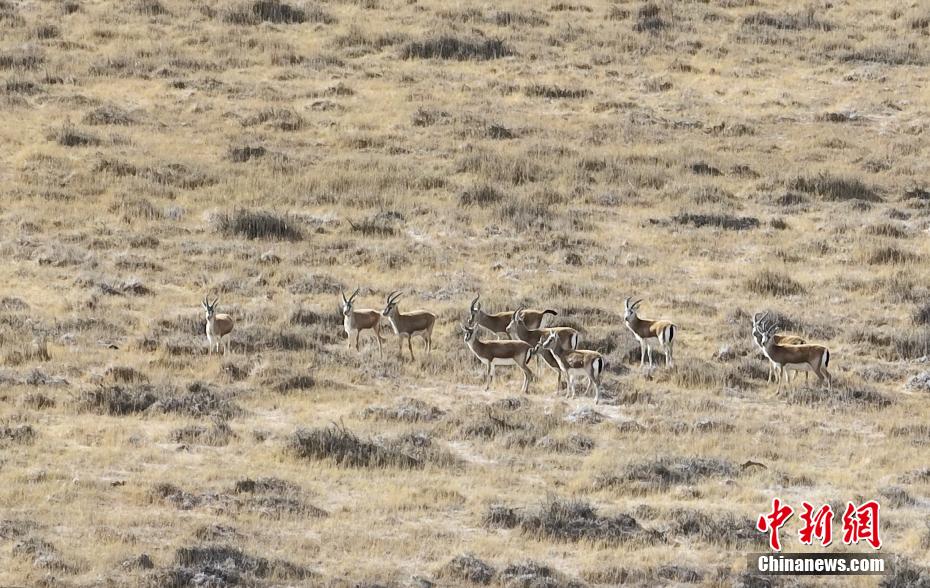圖為都蘭湖國家濕地公園內(nèi)成群的鵝喉羚。馬銘言 攝