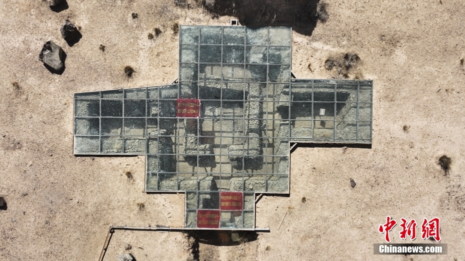 圖為3月18日,航拍青海省海西州都蘭縣熱水墓群一號(hào)大墓。(無人機(jī)照片)中新社記者 馬銘言 攝
