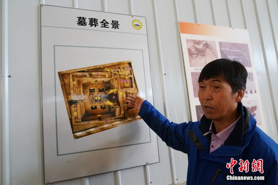 3月18日,青海省海西州都蘭縣博物館館長(zhǎng)張杲光介紹熱水墓群2018血渭一號(hào)墓。中新社記者 馬銘言 攝