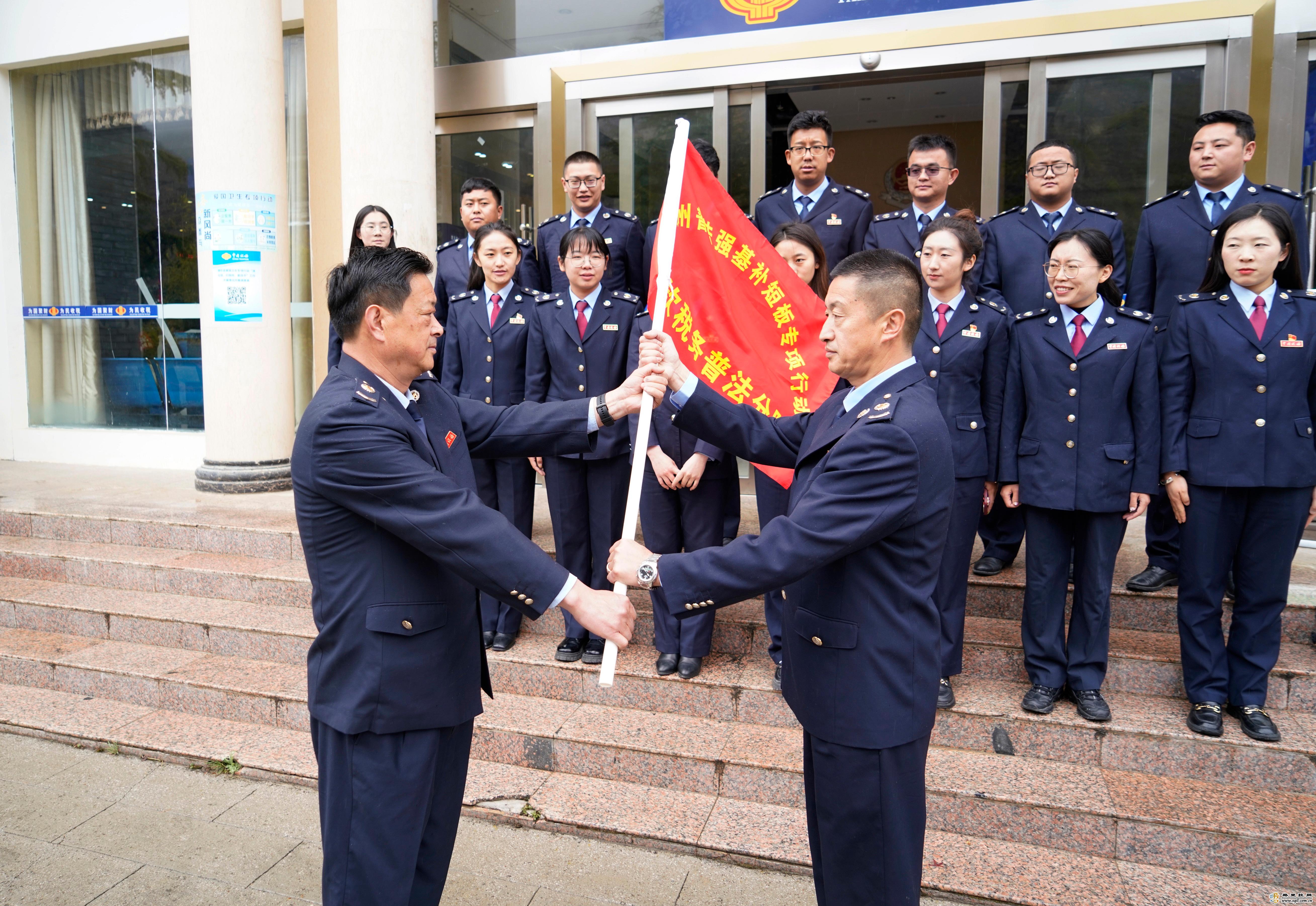 近日,國家稅務(wù)總局迪慶州稅務(wù)局舉行迪慶州普法強基補短板專項行動全州稅務(wù)系統(tǒng)普法分隊授旗儀式,拉開我州第32個全國稅收宣傳月活動的序幕。儀式上,州稅務(wù)局相關(guān)負責(zé)人為三縣(市)及開發(fā)區(qū)稅務(wù)局稅務(wù)普法分隊授旗。