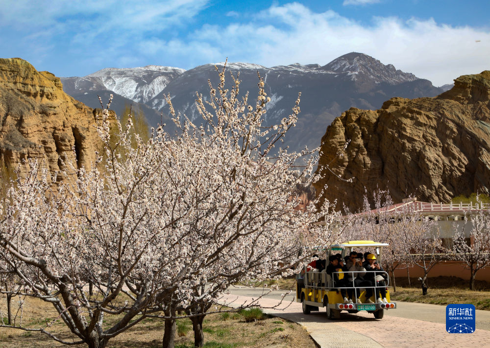 春暖花開(kāi)的季節(jié),位于青海省海南藏族自治州貴德縣的貴德國(guó)家地質(zhì)公園迎來(lái)春游的游客,盛開(kāi)的春花與丹霞地貌、雪山構(gòu)成一幅美麗的高原春色圖。