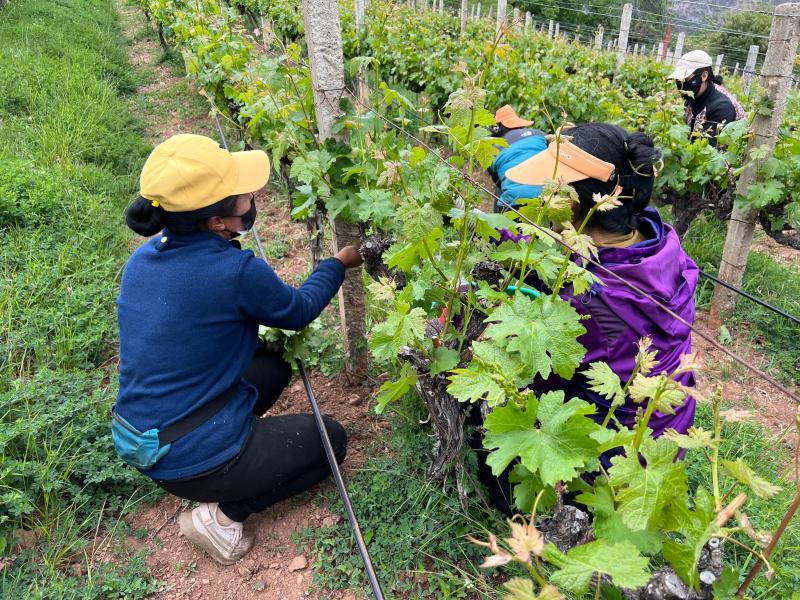 為不斷拓寬農(nóng)戶增收路子,公司與當?shù)馗裆C范淦咸逊N植專業(yè)合作社合作,采取“租賃+務工”模式,按租賃每畝土地30個工,每個工120元的方式,為當?shù)卮迕裉峁┬藜?、采摘、釀酒等各類就業(yè)崗位。在此基礎上,村黨總支積極聯(lián)系香格里拉酒業(yè)股份有限公司,通過訂單收購方式,在阿東村下片四個村民小組收購赤霞珠,霞多麗,西拉等品種,從2012年至今每年以3.6元每公斤收購,戶均收入達12910元。