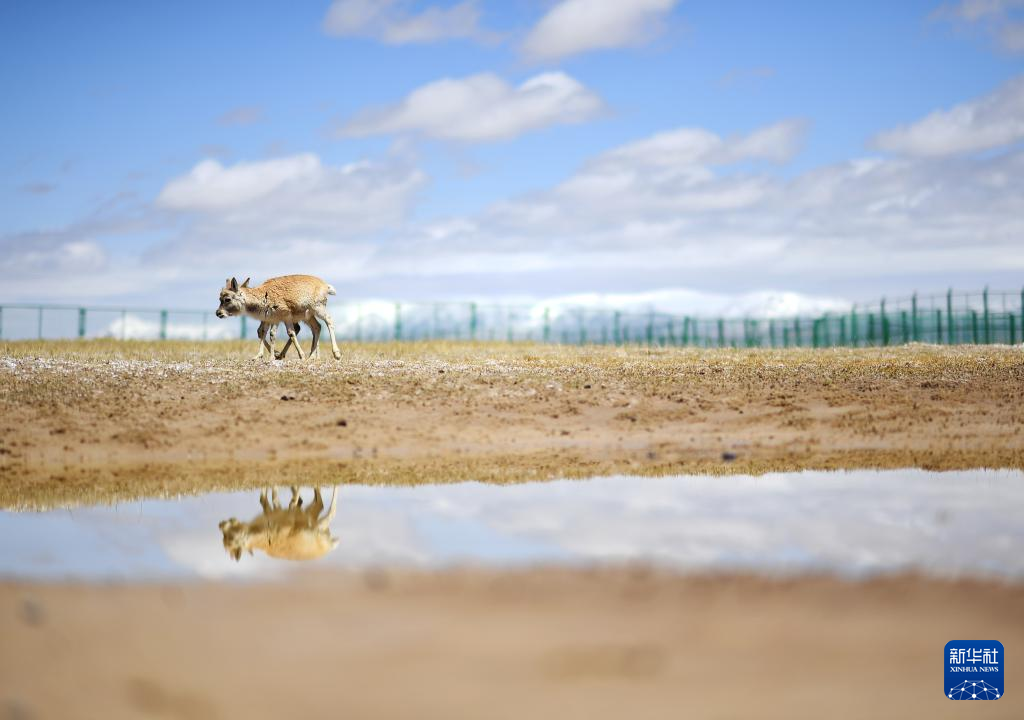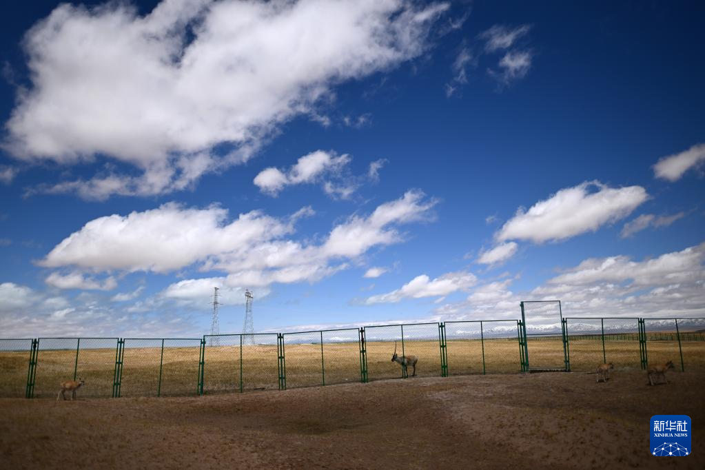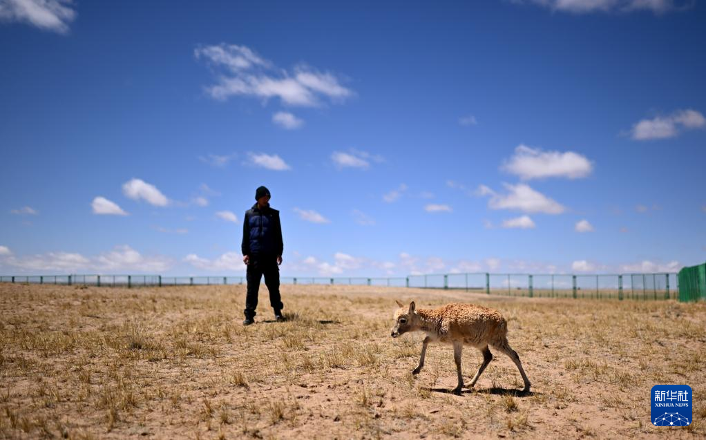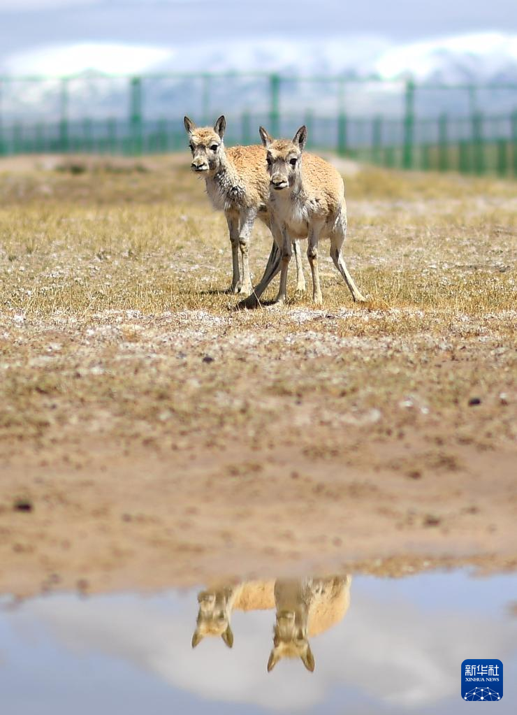 在可可西里國家級自然保護(hù)區(qū)索南達(dá)杰保護(hù)站,藏羚羊在野生動物救助中心活動(5月30日攝)?!⌒氯A社記者 薛玉斌 攝