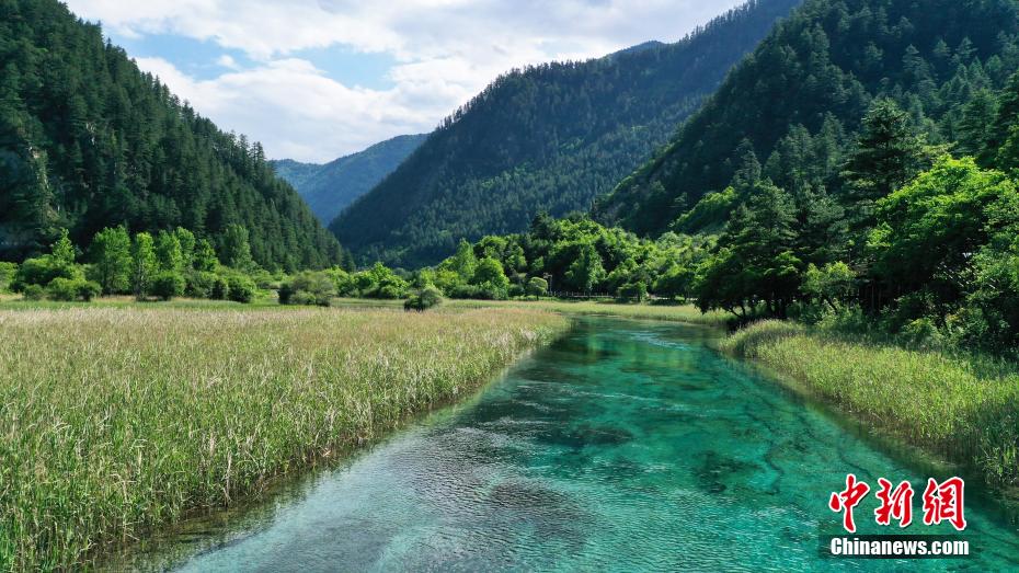6月8日,初夏時節(jié),世界自然遺產(chǎn)地九寨溝景區(qū)風景如畫,吸引眾多游客觀光游玩。安源 攝