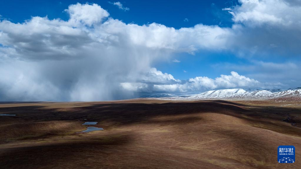 這是6月17日拍攝的可可西里卓乃湖附近的雪山(無(wú)人機(jī)照片)。新華社記者 張宏祥 攝