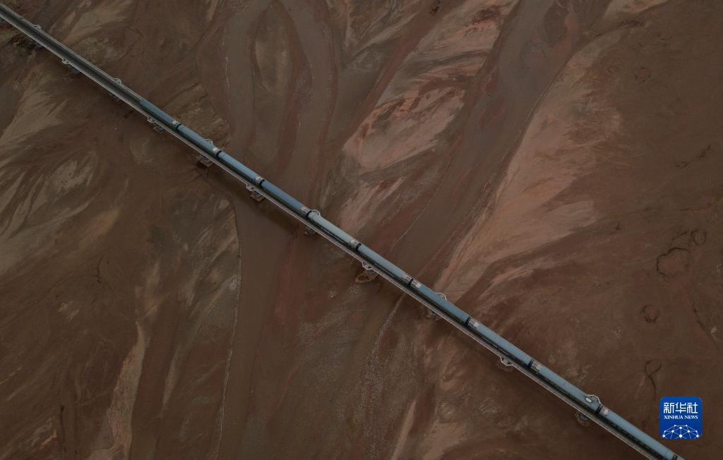 6月16日,一列火車經(jīng)過長江源地區(qū)的楚瑪爾河。新華社記者 金立旺 攝
