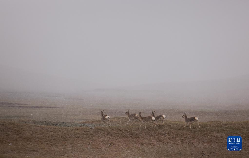 6月16日,在長江源地區(qū)的楚瑪爾河附近,幾只藏原羚在嬉戲。新華社記者 金立旺 攝