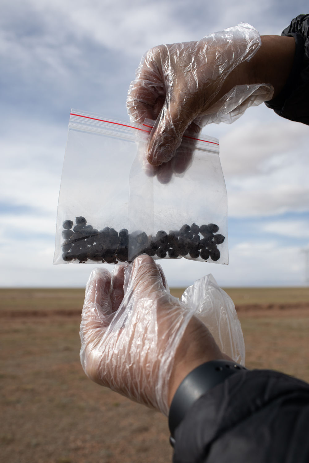 6月15日,王東展示剛采集的藏羚羊新鮮糞便樣本。