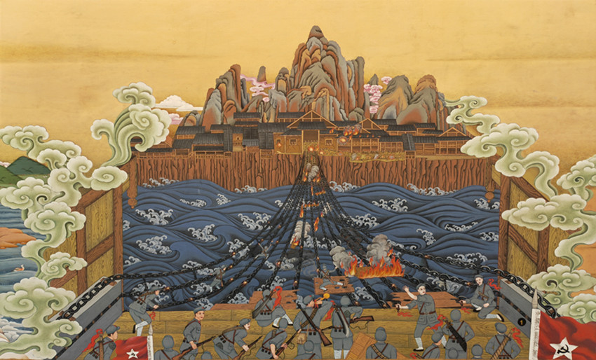 巨幅唐卡《紅星照耀雪域》中的飛奪瀘定橋場景。“紅色非遺根植中華文化故土,富含深刻的革命文化,它代表了中華文化中先進(jìn)的、優(yōu)秀的部分,紅軍長征更是文學(xué)藝術(shù)創(chuàng)作取之不盡用之不竭的源泉。[詳細(xì)] -