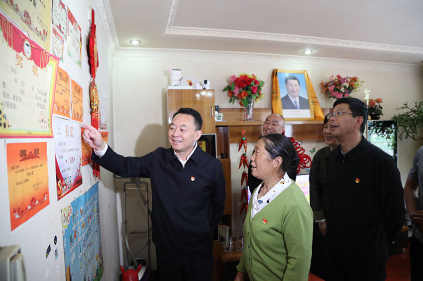 沈陽在黨員任龍芳家中了解后輩學(xué)習(xí)情況。
