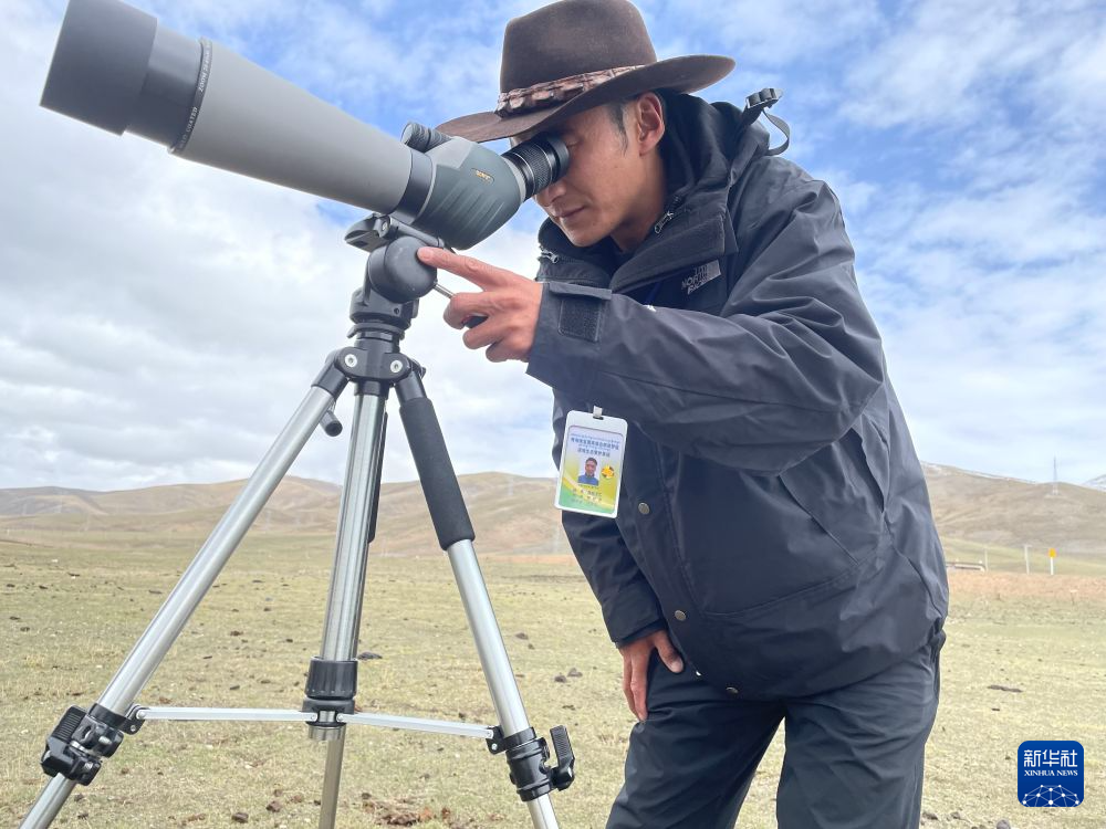 濕地生態(tài)管護員在青海隆寶國家級自然保護區(qū)觀察野生動物。新華社記者 李琳海 攝