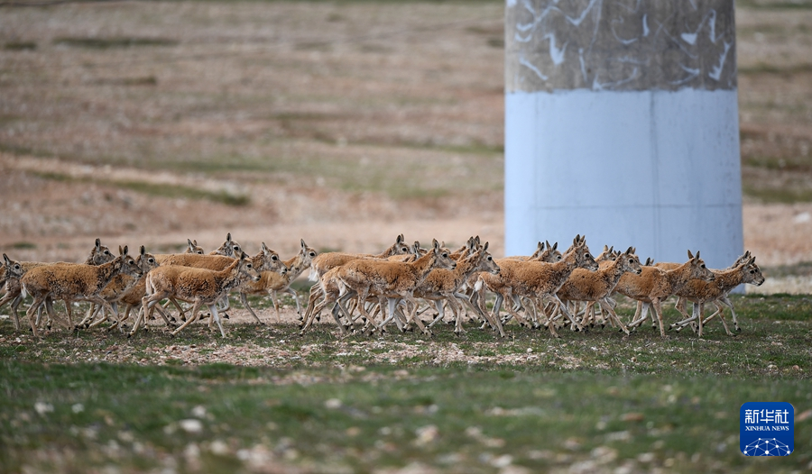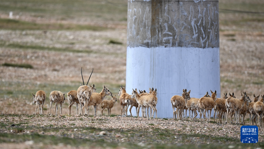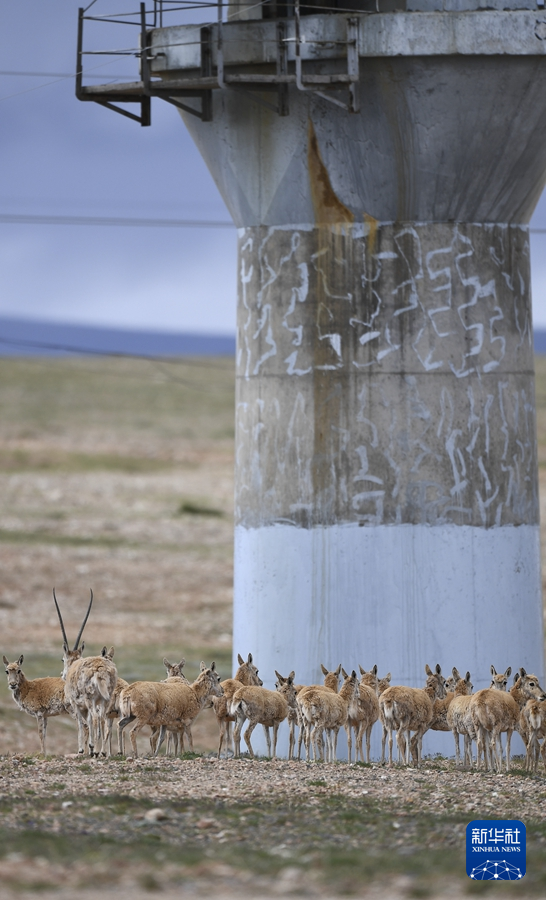 7月28日,一群藏羚羊準(zhǔn)備通過(guò)青藏鐵路五北大橋。新華社記者 韓方方 攝