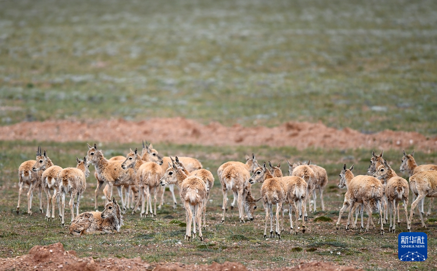 7月27日,一群藏羚羊在可可西里境內(nèi)活動(dòng)。新華社記者 張宏祥 攝