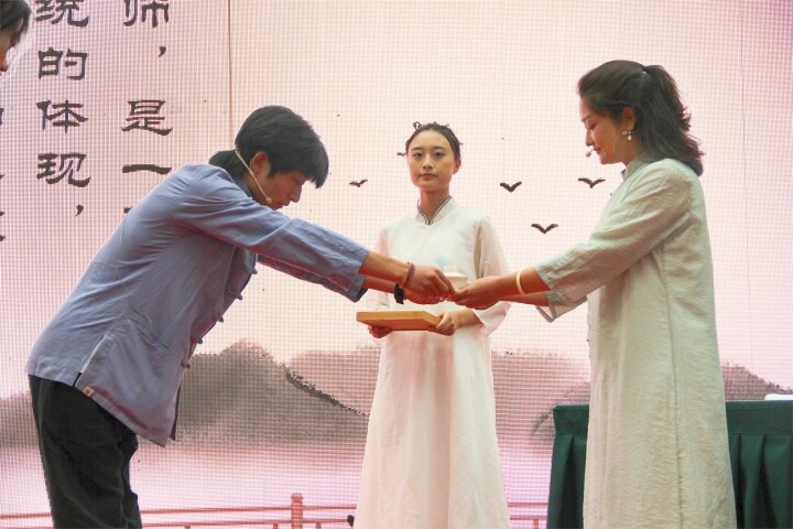 隨后,教師和同學們集體宣讀誓言,慷慨洪亮的聲音在宣告他們有信心做好一名稱職的人民教師、優(yōu)秀的學生。學生代表的發(fā)言充滿朝氣與活力,胸懷理想與信念,展現(xiàn)出同學們磨礪自我、奮斗青春的信心與抱負。教師代表的發(fā)言如良師益友娓娓道來,用榜樣的力量和長者的親切,為同學們指點迷津、加油鼓勁,激勵同學們胸懷遠志、堅毅卓絕、奮發(fā)進取、只爭朝夕!隨后,同學們在主持人的指引下肅整衣冠、向老師鞠躬行禮,寓意此后正式踏入學門,明志于四方。