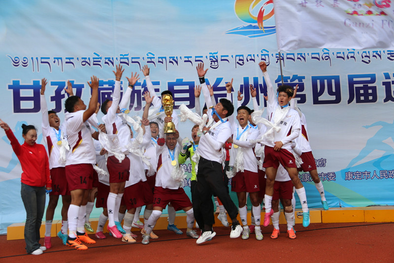 賽后,本屆運動會組委會在康定市北門體育場舉行了足球賽頒獎儀式,本屆運動會足球賽冠軍甘孜隊、亞軍康定隊、季軍巴塘隊依次參加儀式領取獎牌。