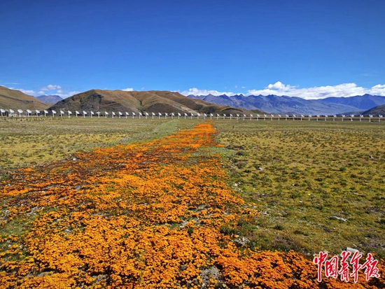 從“全球海拔最高”的四川稻城亞丁民用機(jī)場(chǎng)驅(qū)車一路向南,繞過重巒疊嶂,穿過稻城縣城,便能在一片開闊的草場(chǎng)上,看到由313個(gè)“大鍋蓋”圍成的巨大圓圈。